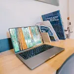 - ❓Is there a kitchen available at the apartment for guest use?Yes, the apartment is furnished with a fully equipped kitchen and offers a microwave, coffee and tea making machines, and a refrigerator as well.